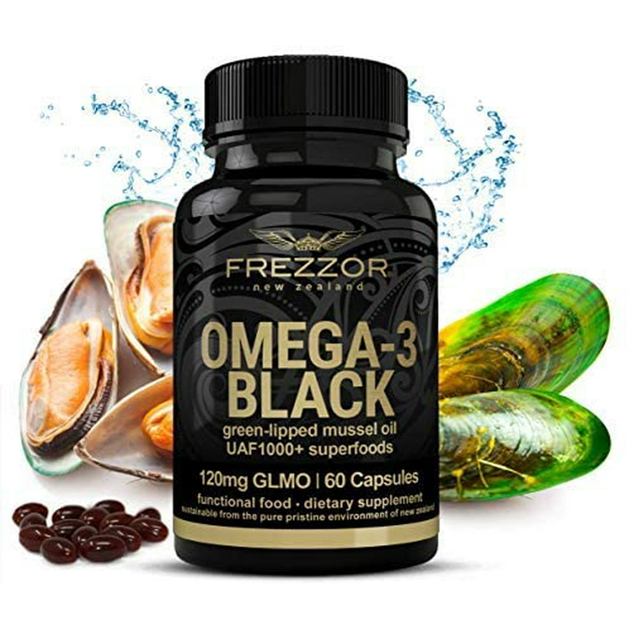 Frezzor Omega 3 Black Joint Pain Relief Anti Inflammatory Heart Immune Support No Fish Oil Taste Green Lipped Mussel Oil New Zealand 450mg 1 Pack 60 Count Walmart Canada
